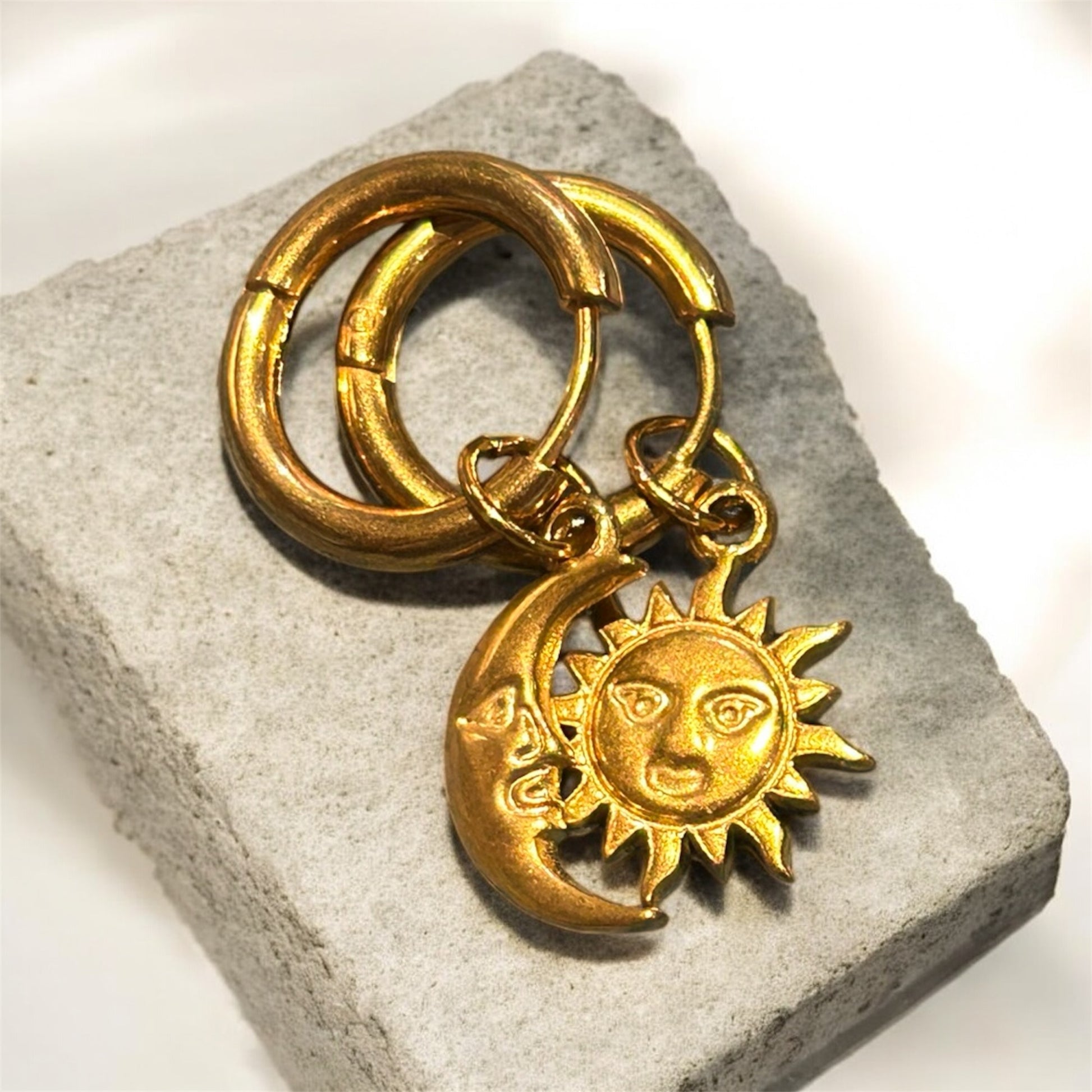 Shine bright day and night with our Sun & Moon Harmony Hoop Earrings. These bold gold-plated stainless steel hoops feature celestial charms representing balance, energy, and light. Perfect for dreamers, stargazers, and those who love meaningful jewellery with a statement twist. Waterproof and tarnish-free β ideal for everyday wear or to elevate your night-out look.