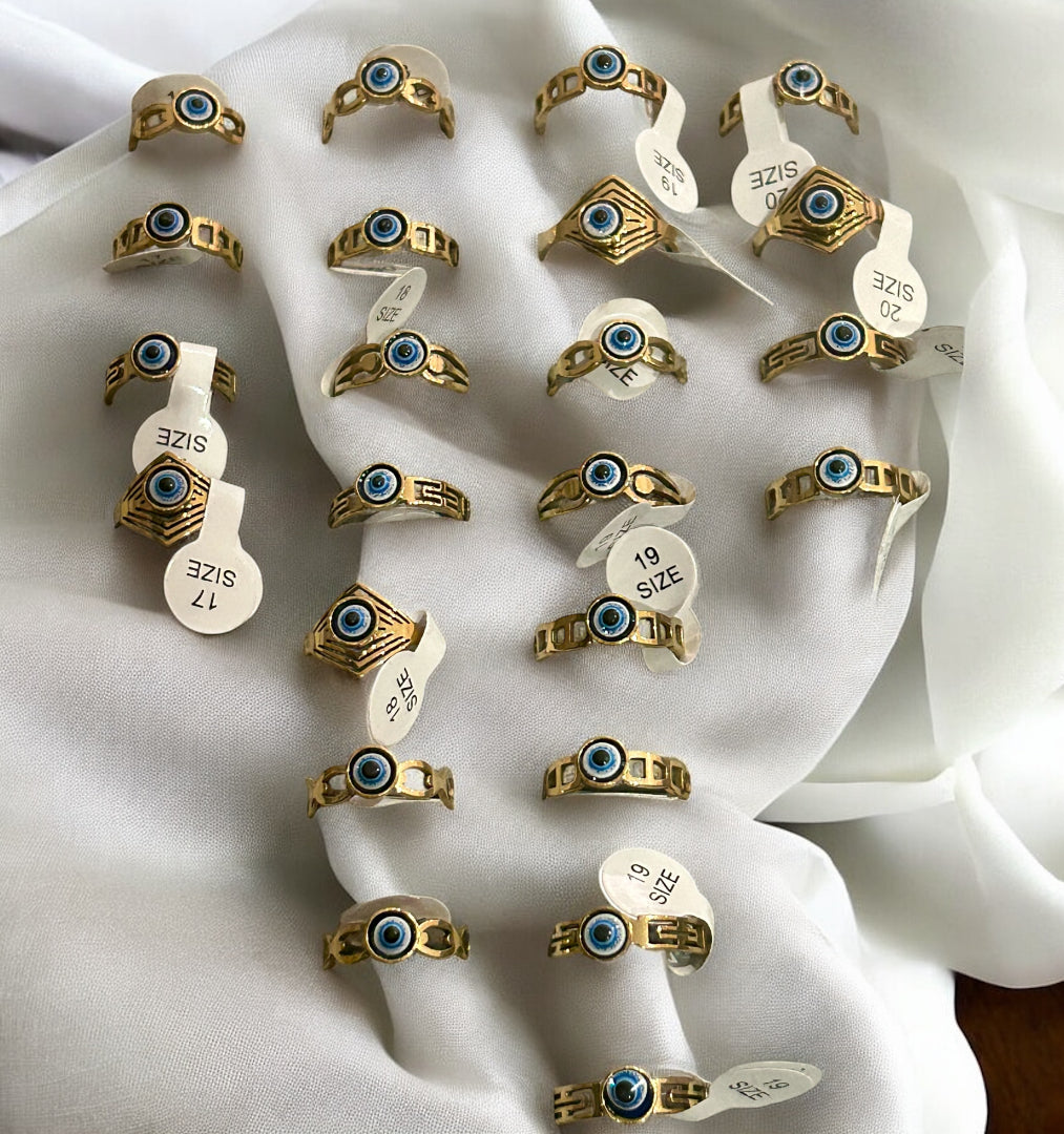Add timeless protection and elegance to your style with our Evil Eye Greek Link Ring. Crafted from high-quality stainless steel, this ring features a stunning blue evil eye centre set within a bold Greek-style band design. Waterproof, tarnish-free, and perfect for everyday wear, it symbolises good luck and wards off negative energy. Available in multiple sizes, it’s an ideal piece to wear solo or stack with your favourite rings for a powerful statement look.